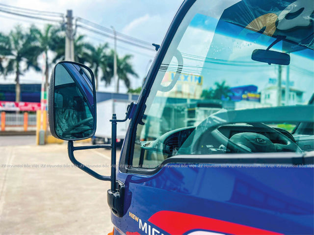 Phần gương chiếu hậu được bố trí trên một thanh đỡ ở vị trí thuận tiện giúp tài xế dễ dàng quan sát các điểm mù hoặc trong các cung đường nhỏ hẹp.