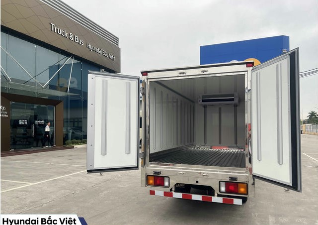 Xe tải Hyundai New Mighty N250SL thùng đông lạnh đang được bán tại Hyundai Bắc Việt. Đặc điểm của thùng đong lạnh phù hợp với rất nhiều nhu cầu của khách hàng như: Chở cám, lương thực thực phẩm…, những sản phẩm có đặc tính cần độ thoáng cao. Tải trọng của xe lên đến 2 tấn 4. Thùng xe dài hơn 4 mét, rộng gần 2 mét và cao 1.7 mét.